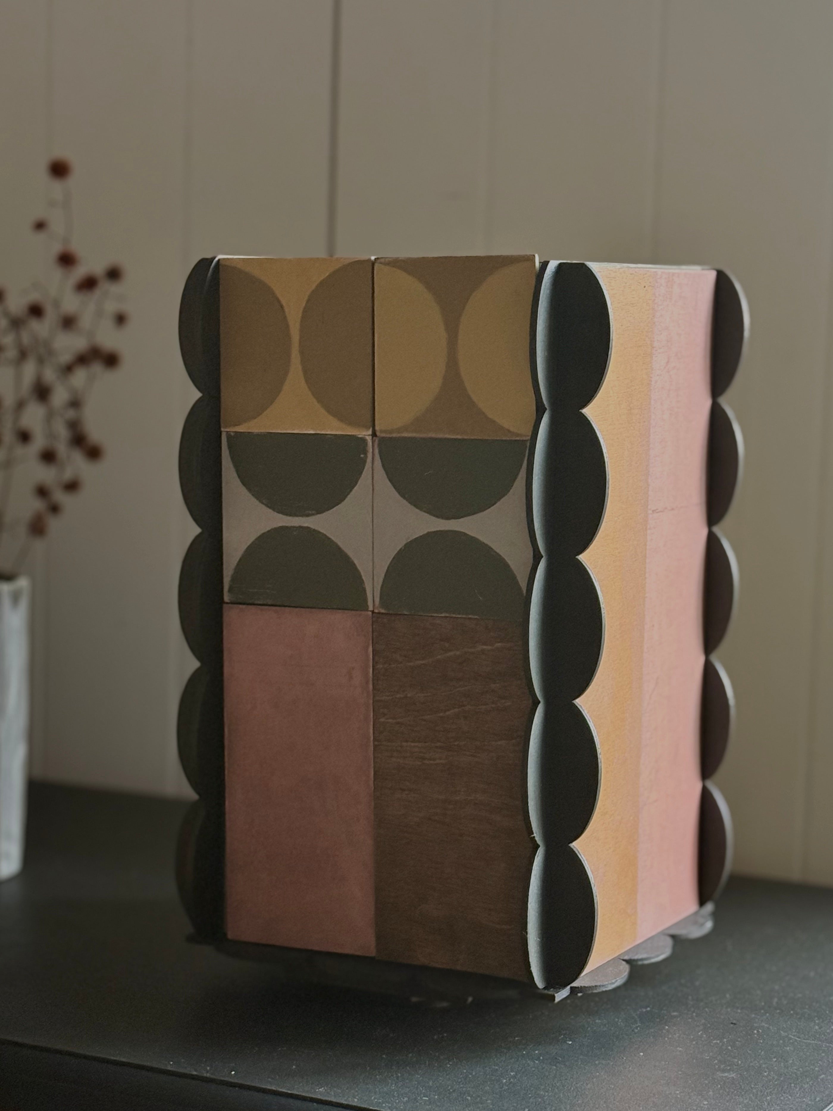 Lift your artwork out, place it on its box, move it around your home. Each small poppy box hold up to twenty 140x140 timber art tiles - your display can evolve over time. -